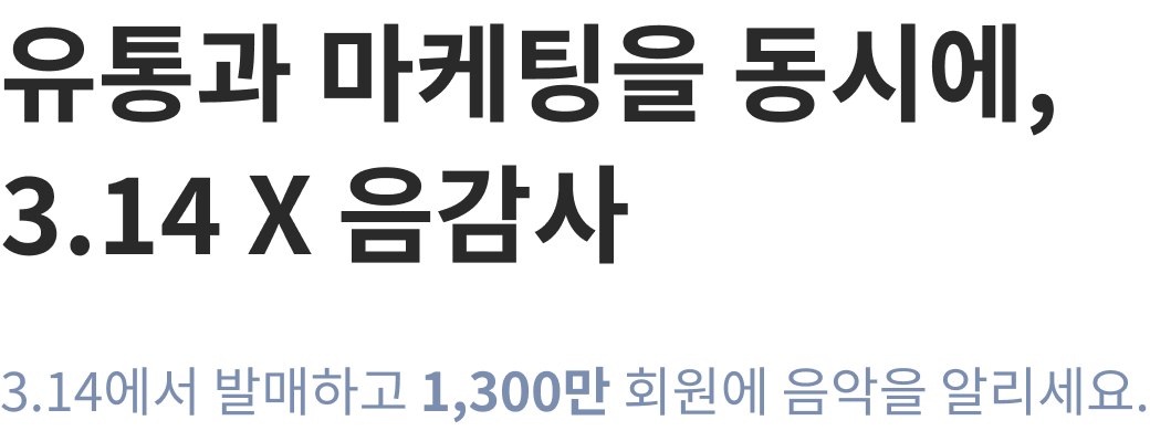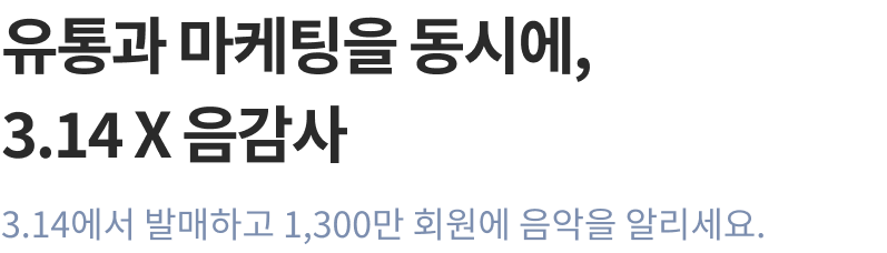 314 for Artist는 아티스트 또는 매니지먼트사가 직접 음원 발매, 플랫폼 프로모션, 유료 마케팅, 아티스트·앨범 정보 관리, 정산까지
