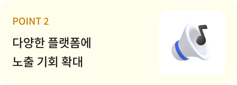 단, 일부 해외 플랫폼의 경우 음원의 스타일이나 콘텐츠 유형에 따라 내부 기준에 의해 발매가 반려될 수 있는 점 참고 부탁드립니다